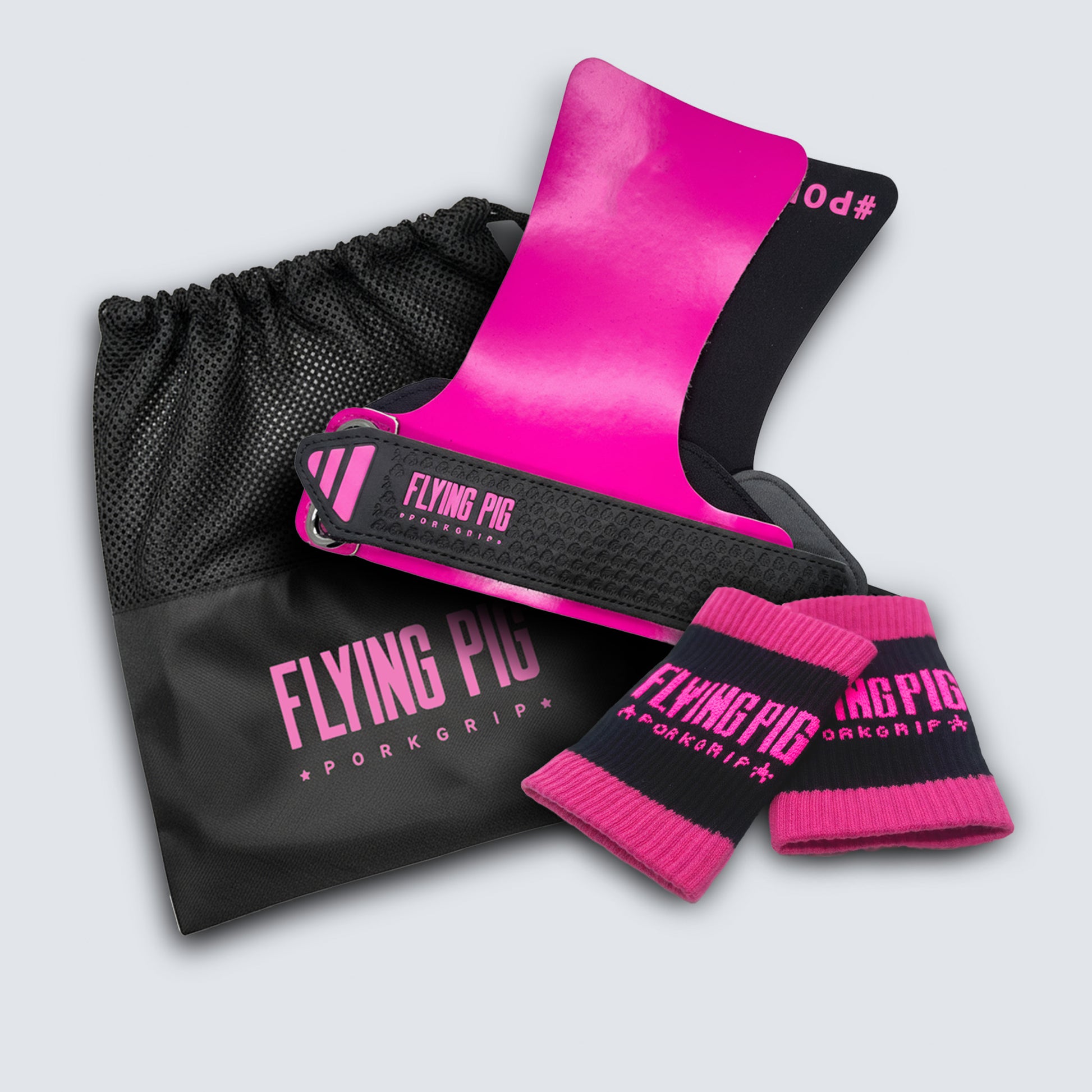 This combo includes our PORKGRIP Alpha hand grips + official carrying bag and, as a gift, a pair of wristbands to complete your setup.